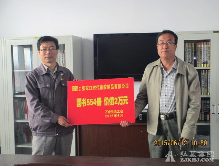 2015612,万全县政协副主席、总工会主席边庆富、常务副主席郭旺、张家口市产业集聚区组宣部部长田胜君等领导到张家口时代橡胶制品股份有限公司,现场捐赠了价值2万多元的图书共计554册。极大地充实了公司“职工书屋”藏书量,满足了职工读书的多样化需求。万全总工会领导始终支持、鼓励“职工书屋”建设,将其作为加强员工思想道德建设、提升员工技能素质的一项重要载体。