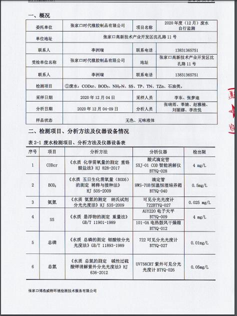 2020年12月水质检测报告