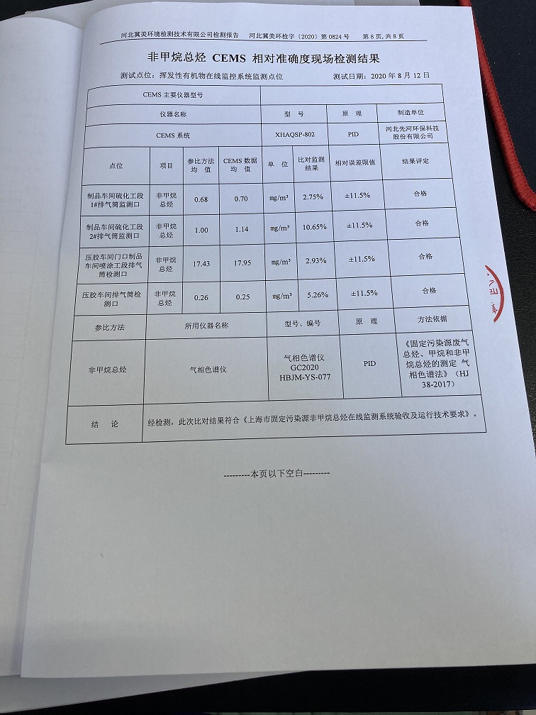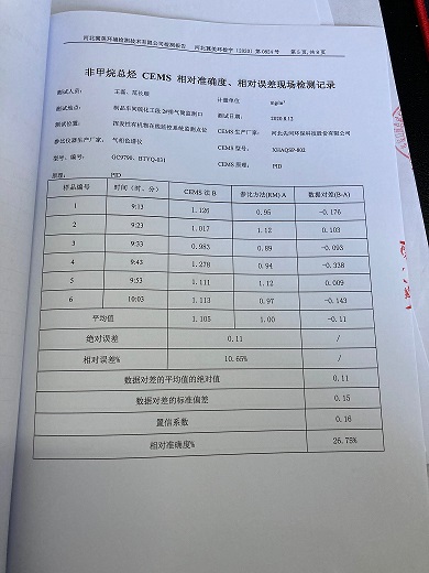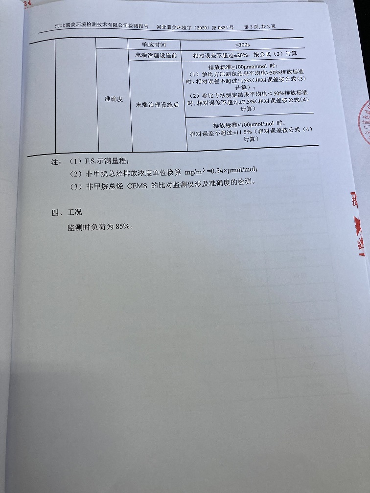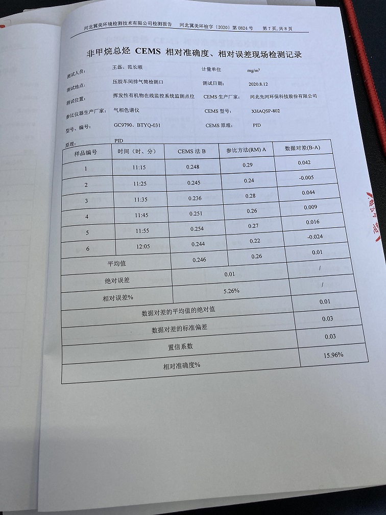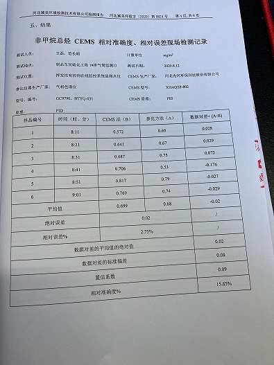 2020年12月固定污染源非甲烷总径自动监测设备对比检测报告