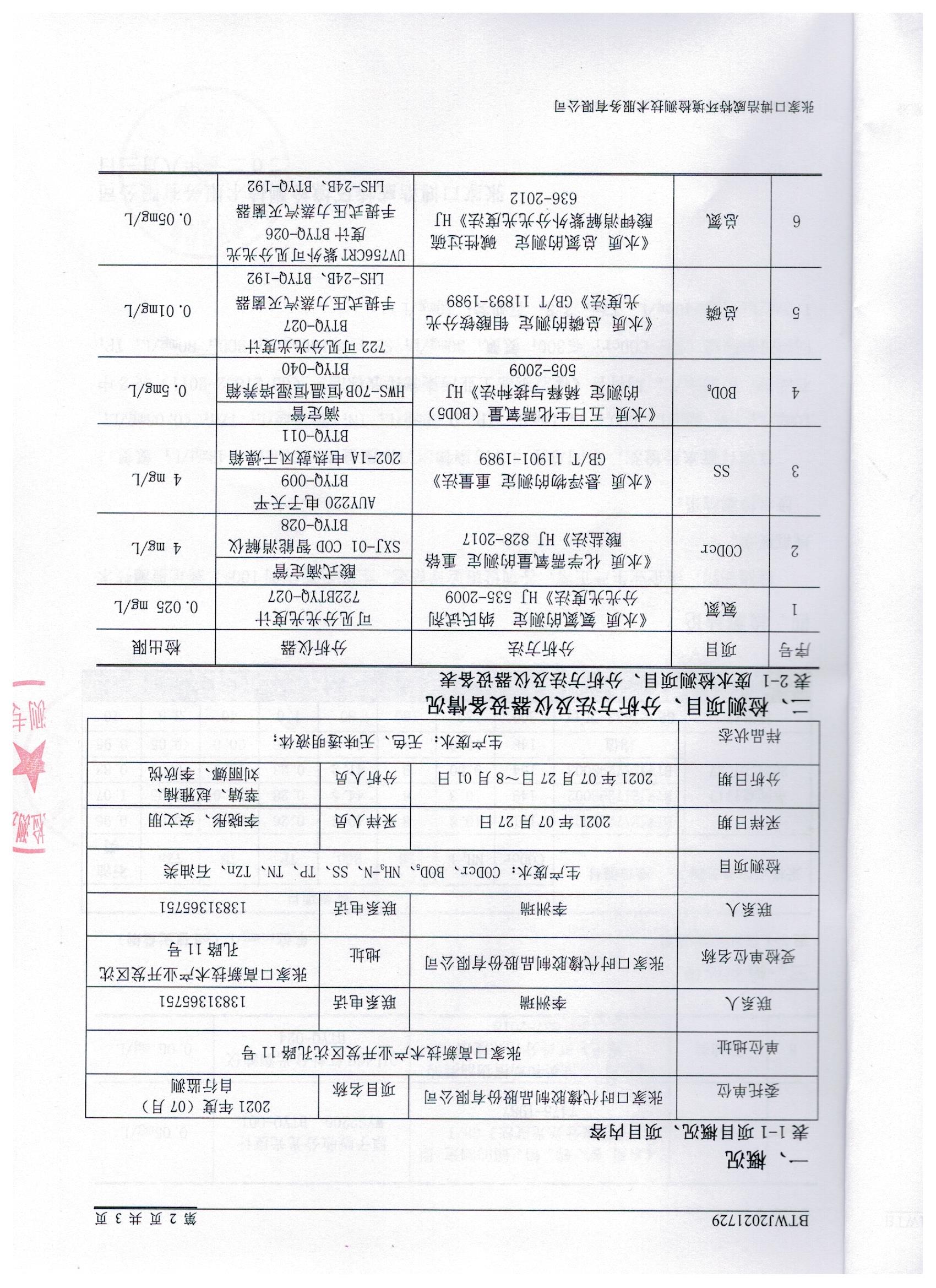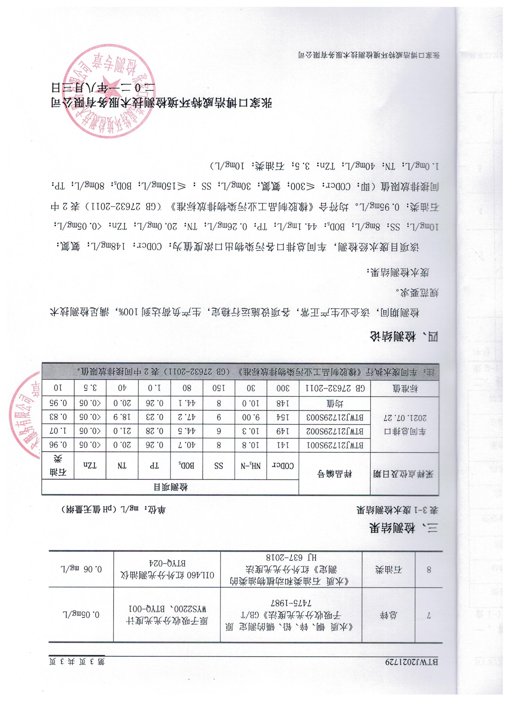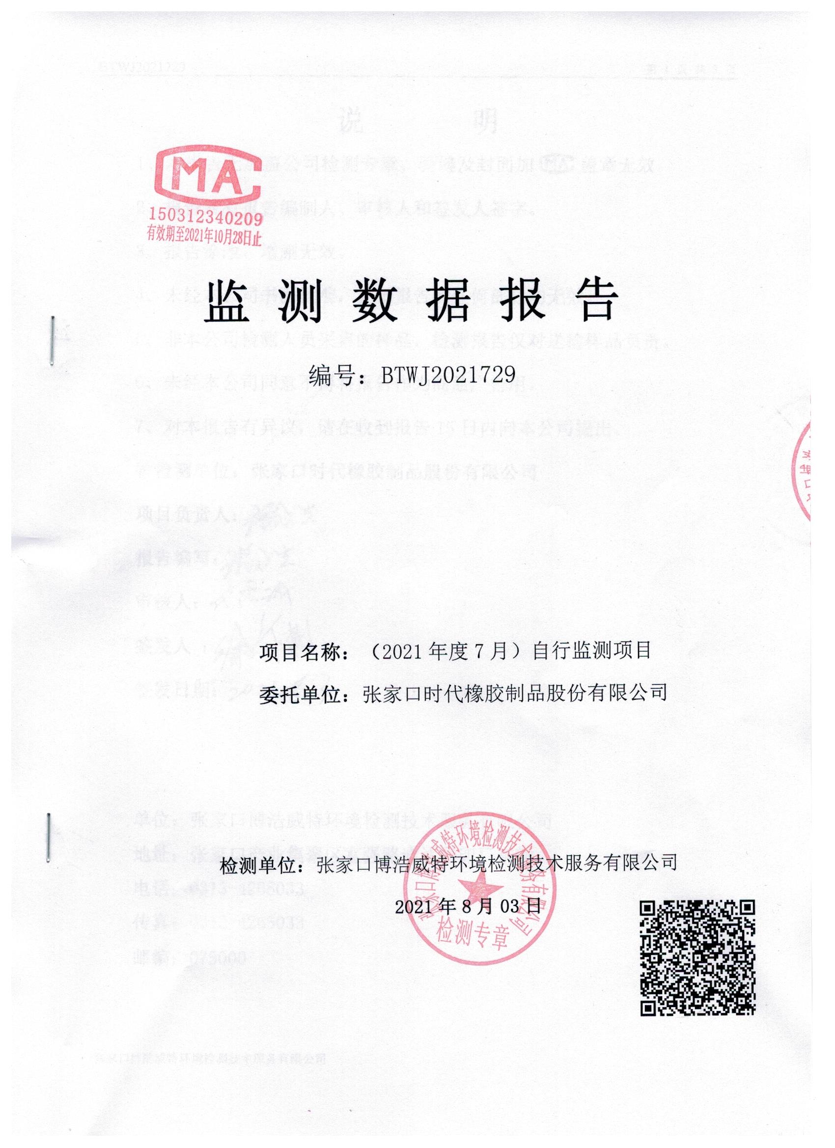 2021年7月份自行监测数据报告