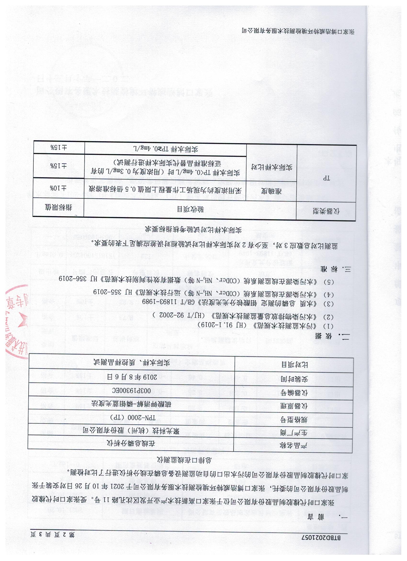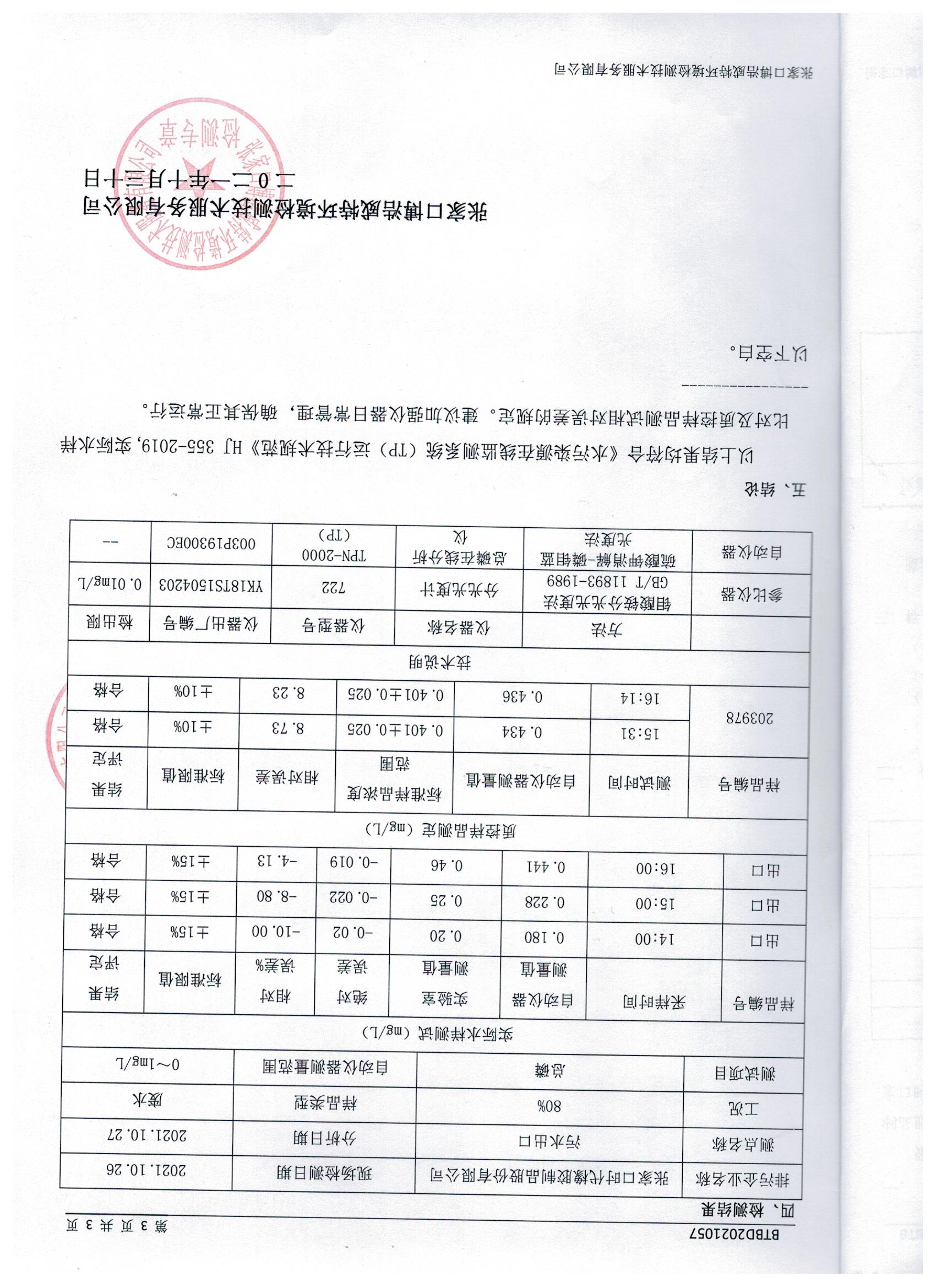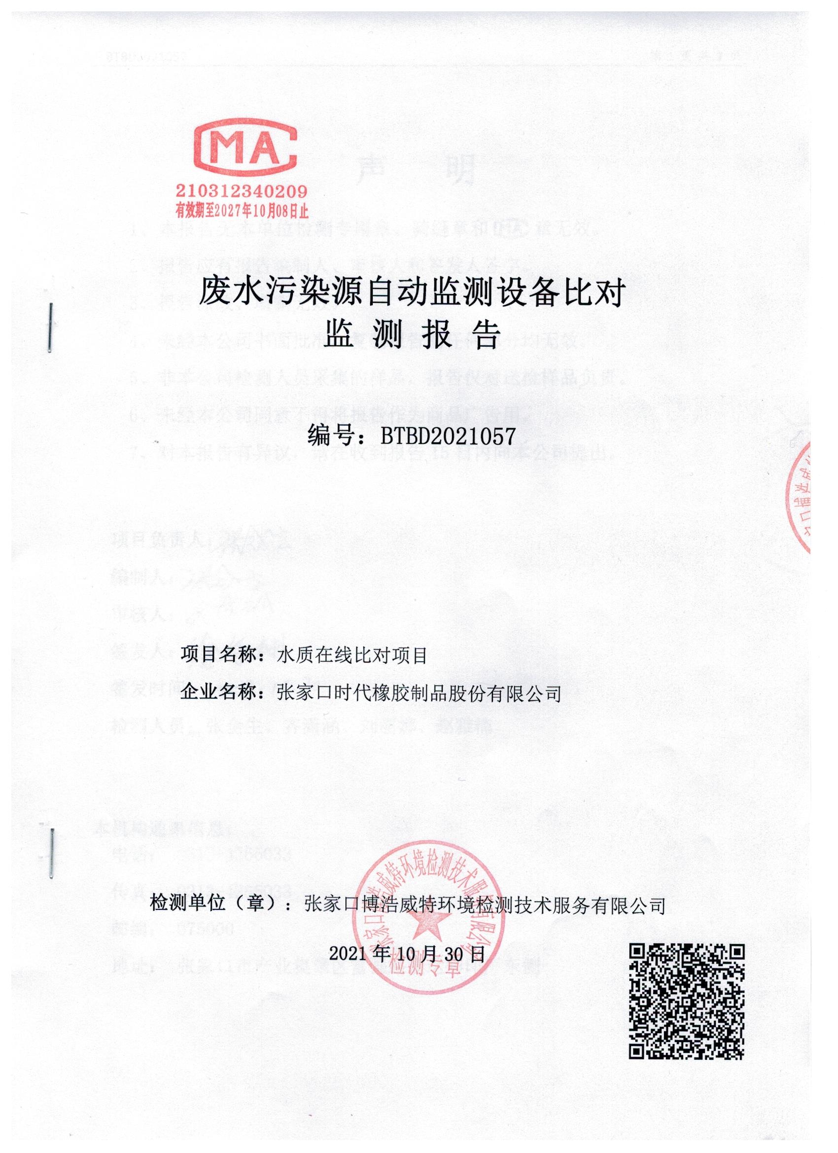 2021年10月废水污染源自动监测设备比对监测报告