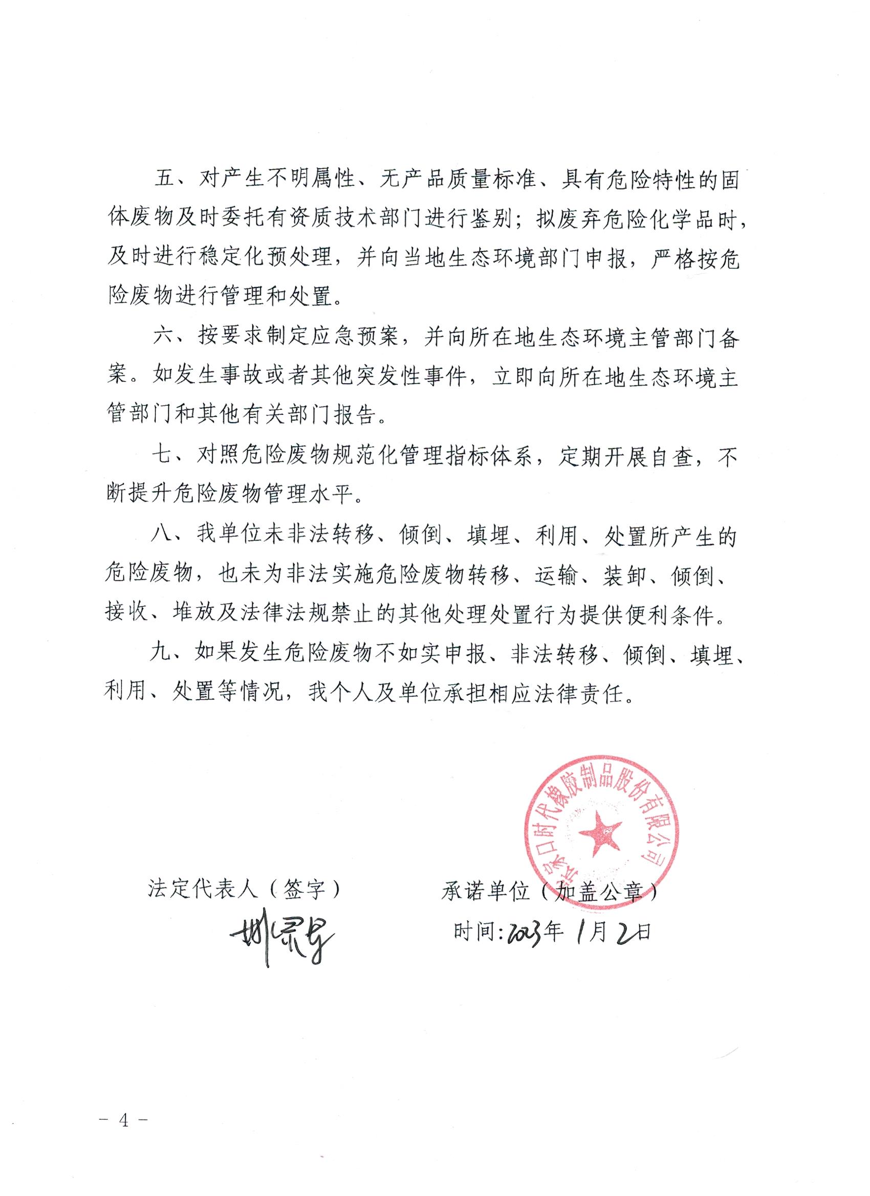 2023年时代橡胶危险废物污染防治主体责任承诺书