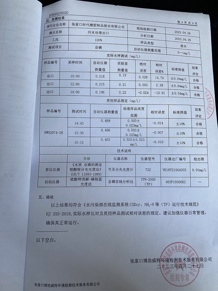 2023年4月废水污染源自动监测设备比对监测报告