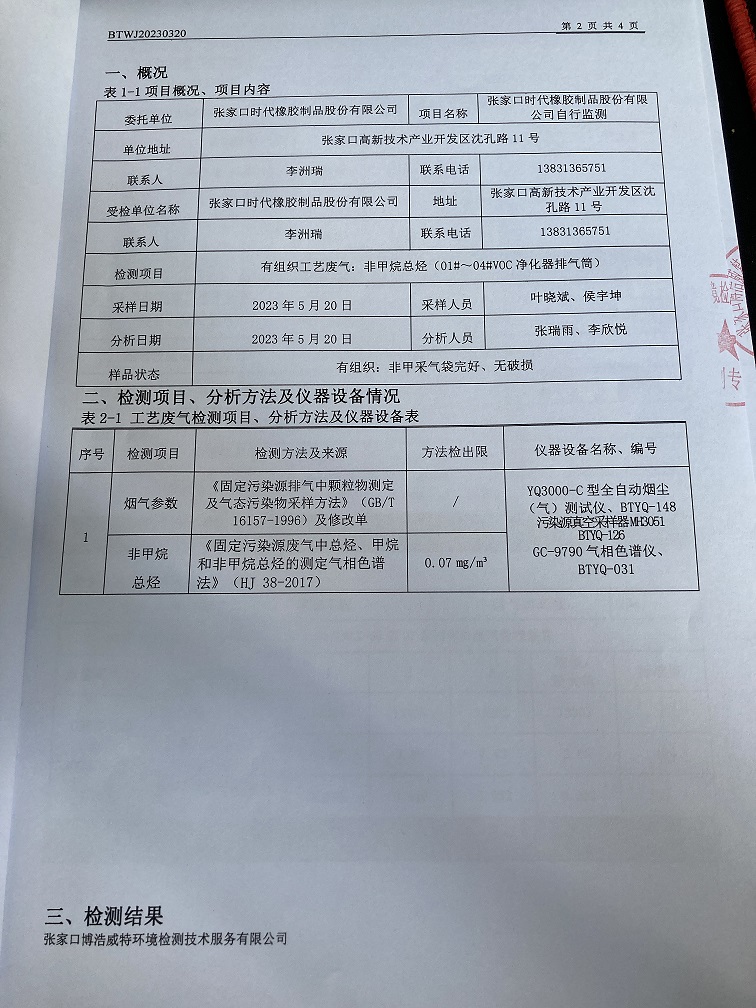 2023年5月份自行监测项目监测数据报告