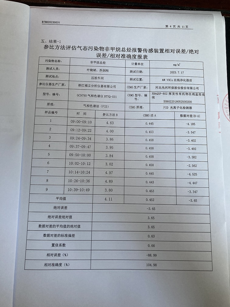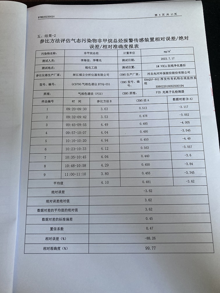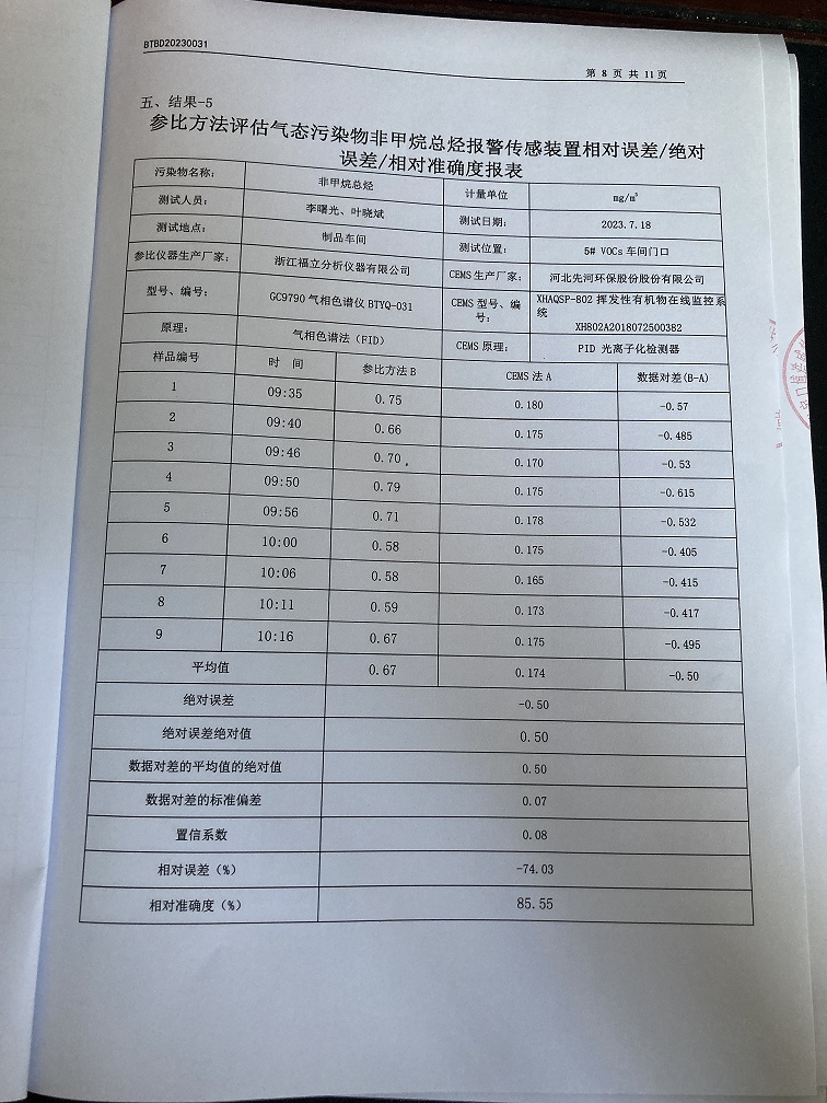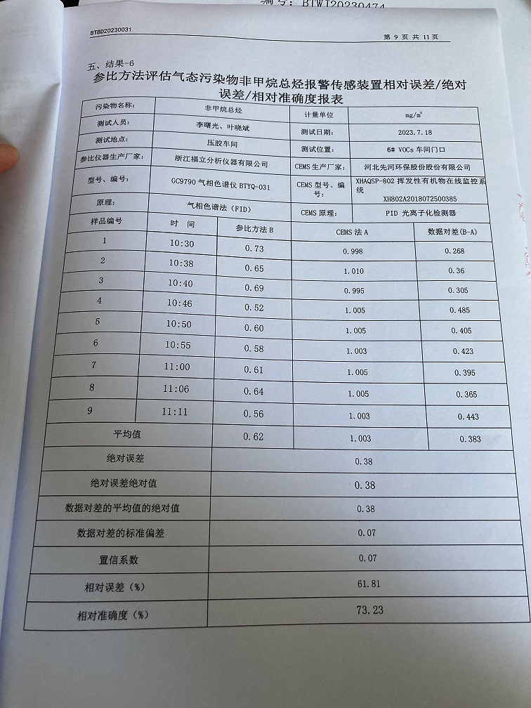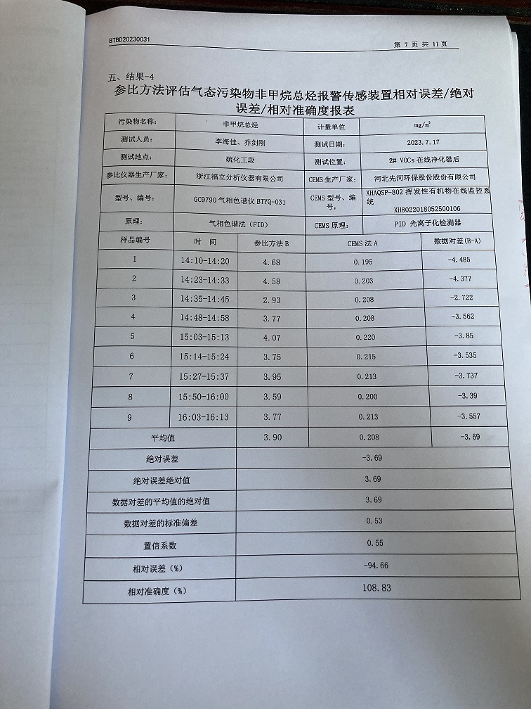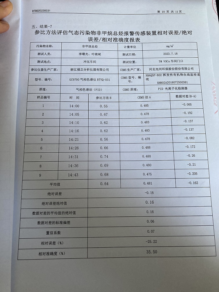 固定污染源烟气自动监测设备比对监测报告(2023年7月26日)