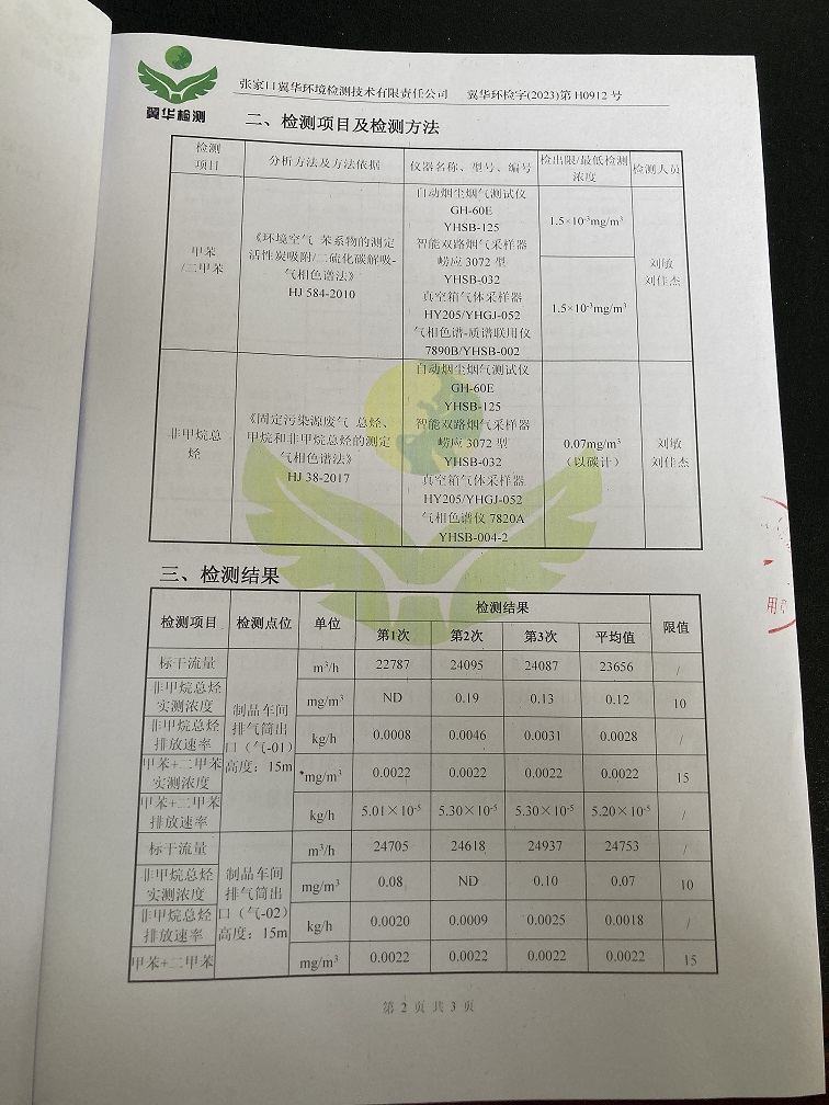2023年11月9日废气自行检测项目报告
