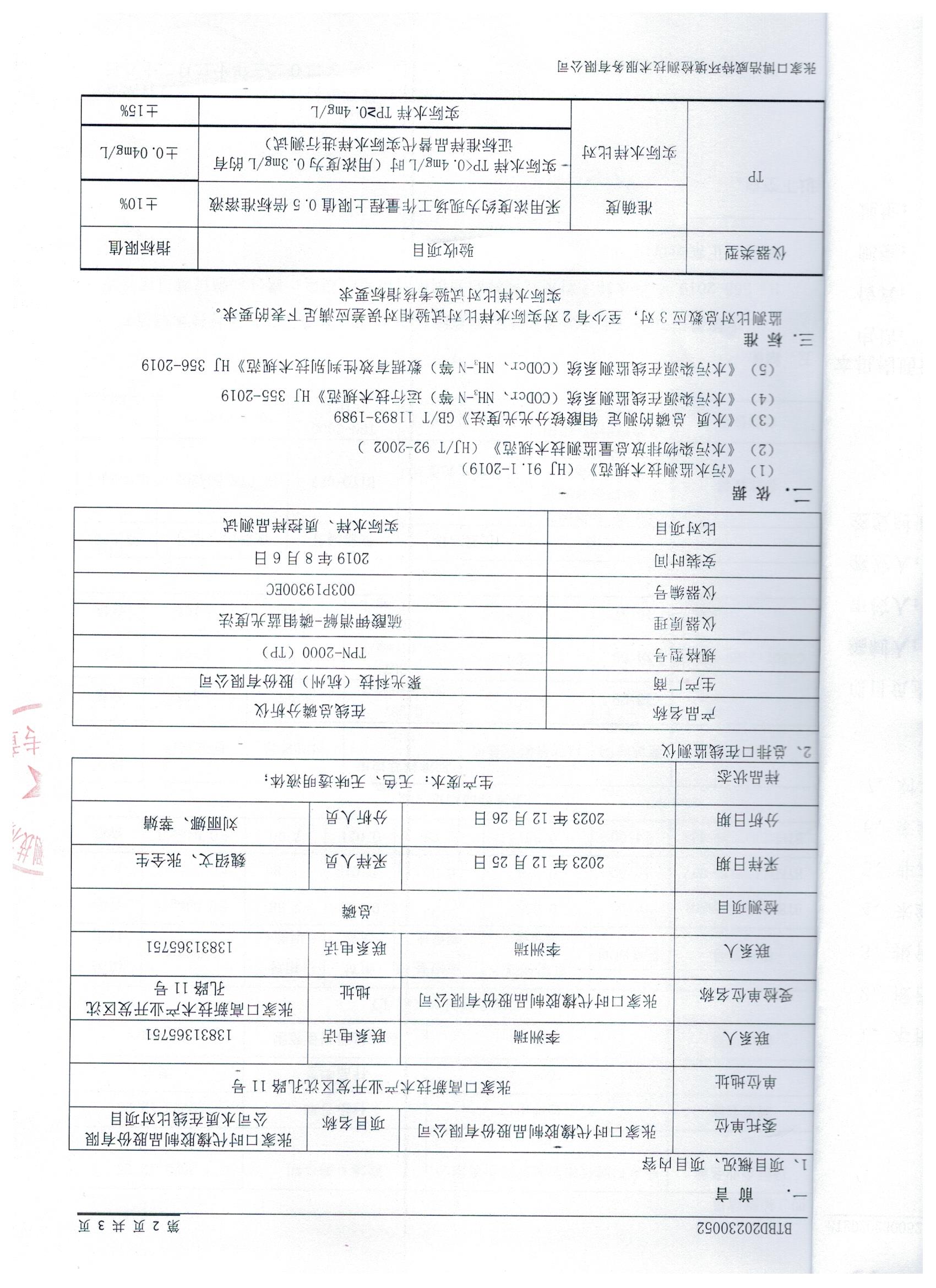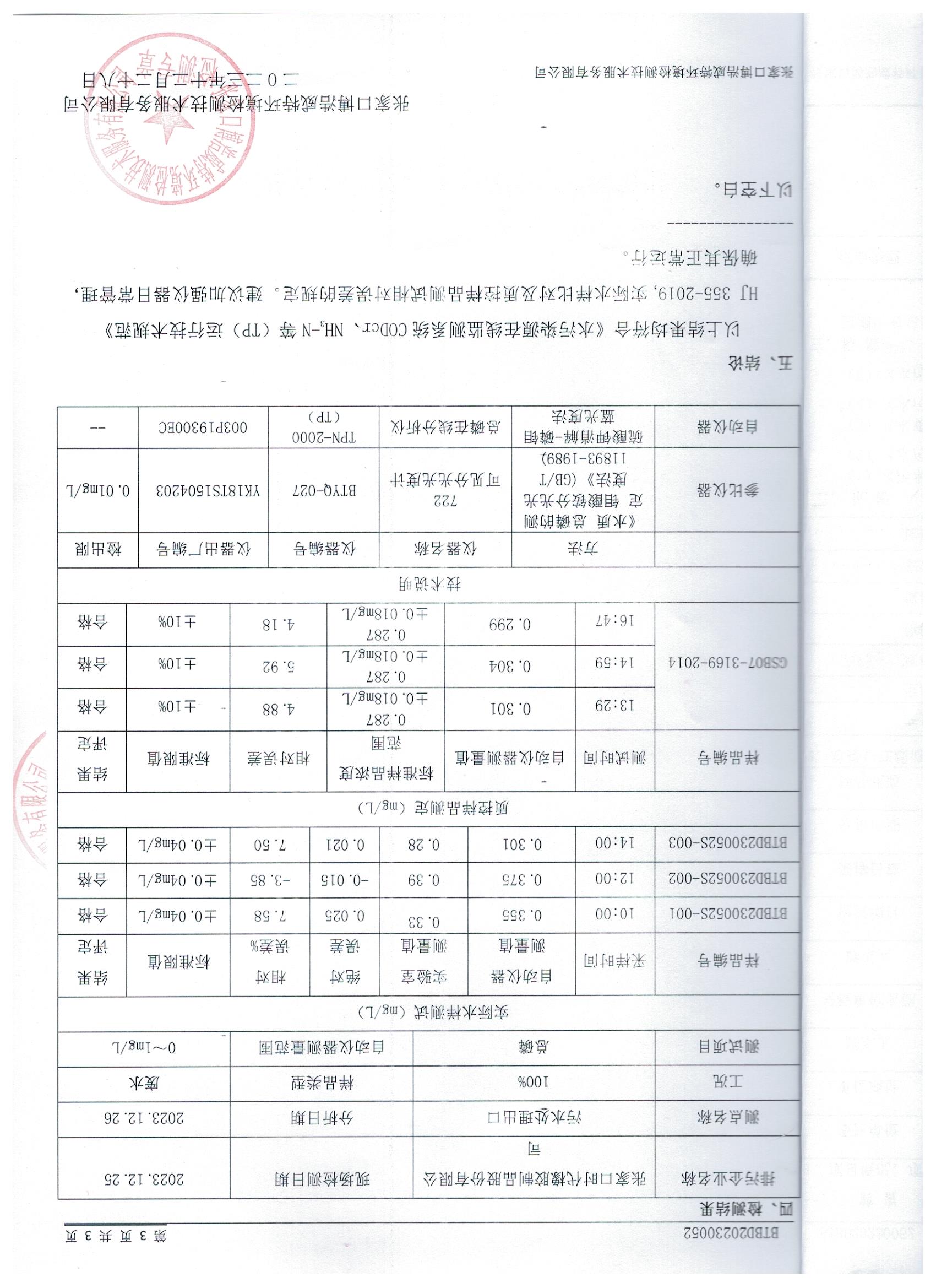2023年12月28日废水监测设备比对报告