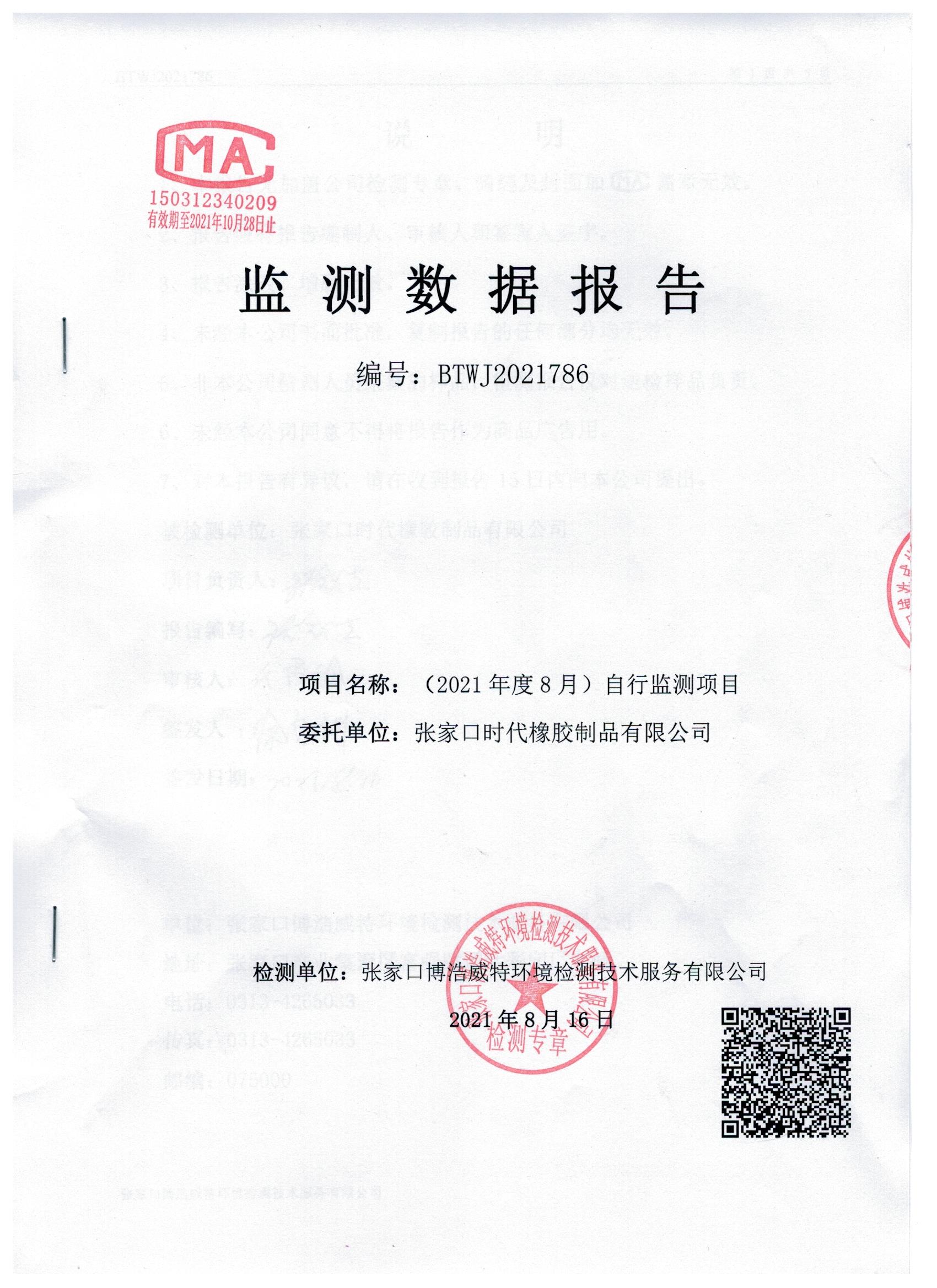 2021年8月份自行监测数据报告